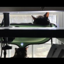 It's purrfect for my 17lb devil cat who was always walking on my keyboard driving me insane. Now he has a spot above his sister all to himself where he can lounge unaccosted and bask in the sun!