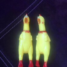 Made of 100% non-toxic rubber, our chicken measures 11 in (31cm) in length, our loud, fussy toy can go with you from parties to concerts and so much more for a screamin’-good time.