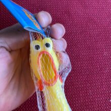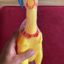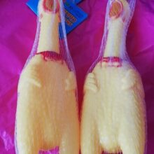 Fair enough product for a cheap rubber chicken. However, if you’re buying this chicken to use as an instrument to play songs like you may have seen on YouTube… Definitely not good for that. The pitch is not variable No matter if you squeeze it hard or soft, faster slow. One pitch only. You’re probably not purchasing this chicken to make music like I was, so I’m sure you’ll be just fine!! If you are intrigued and a little adventurous, get on YouTube and type in “Bohemian Rhapsody, rubber chicken“ in the search bar. 🤣