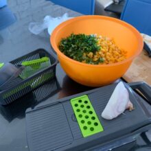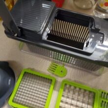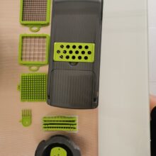 So excited to get this today. Used it to slice potatoes for frying and easily changed the blade to chop a variety of vegetables for a chopped salad — it worked great. Next test will be to chop a bunch of onions for the freezer. It was easy to clean and won’t take up much space to store in a handy kitchen drawer. It appears to be sturdy and I hope if I don’t get to carried away by putting too large pieces of veggies in it, it’ll last me a long time. Good value for the price and I like that I don’t have to plug it in.