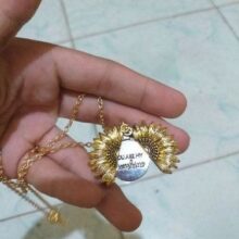 I bought this for my girlfriend and she loved the sentiment. Only thing I personally dislike about it is how it tangles. Maybe they should try a small latch to hold the two halves of the sunflower together. Or maybe even have them open by a hinge. Either way, if they were connected and could open I’d give it 5 stars.